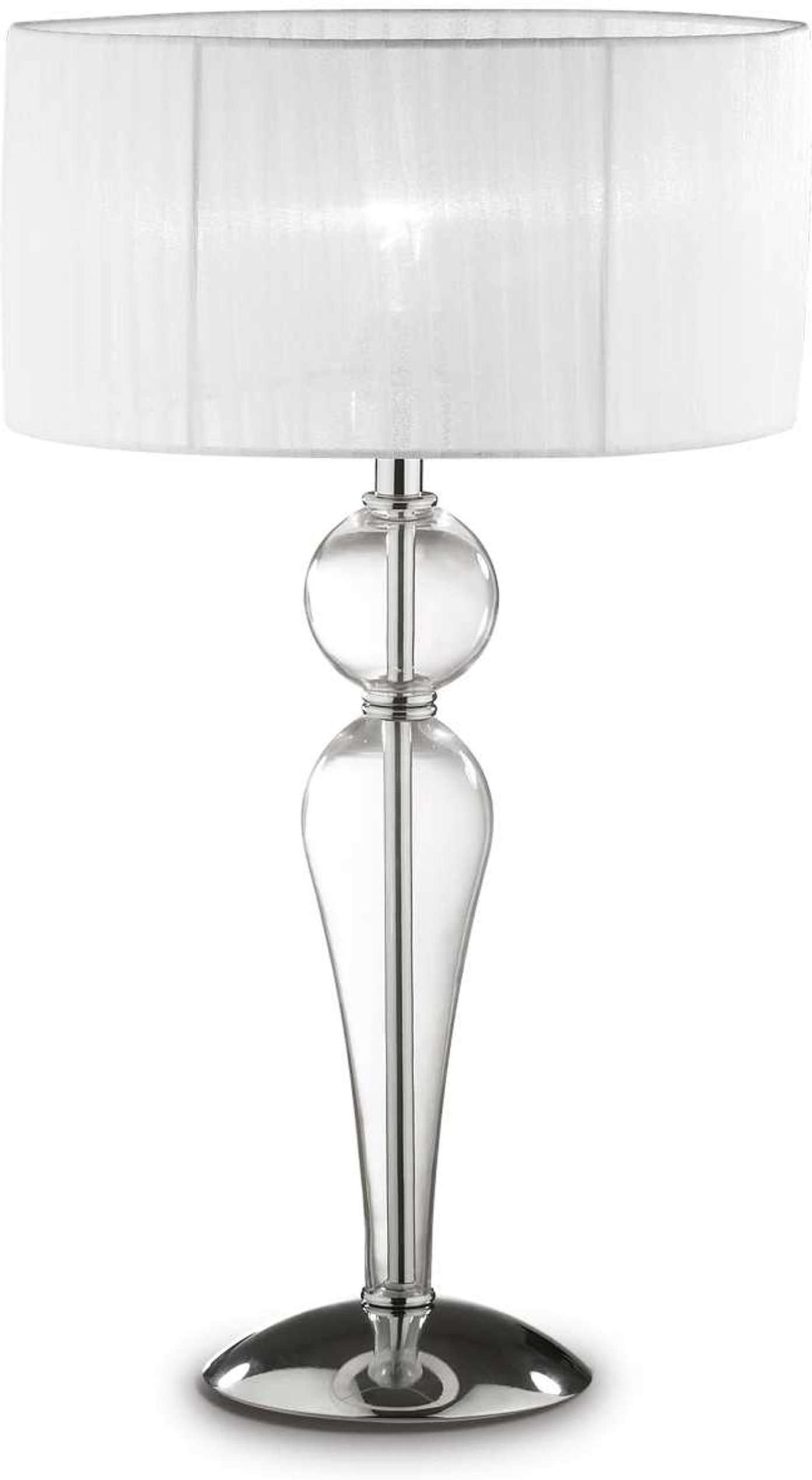 Vi har fundet Bordlampe Ideal Lux Duchessa I Glas Og Krom Med Plisseret Organza Skærm ø36 X H64 Cm fra Ideal Lux hos Likehome.dk i kategorien Home Belysning Indendørslamper Bordlamper. Duchessa bordlampen fra Ideal Lux udstråler en sofistikeret elegance, som kombinerer klassisk design og moderne elementer. Lampens imponerende dimensioner på Ø360 x H640 mm gør den til et markant indslag i ethvert rum. Basen af krommetal giver lampen et s